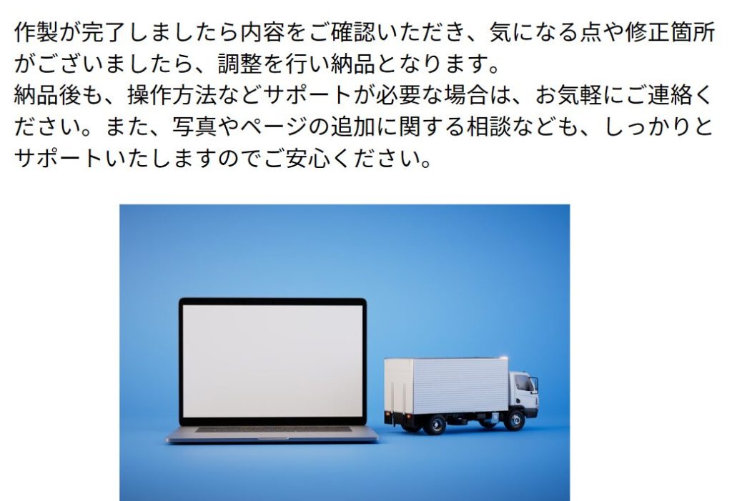 さらに写真のコメントを西暦、場所などを書き添えると分かりやすいでしょう。
